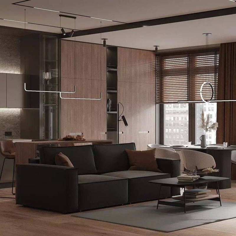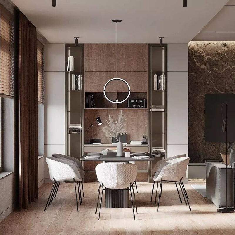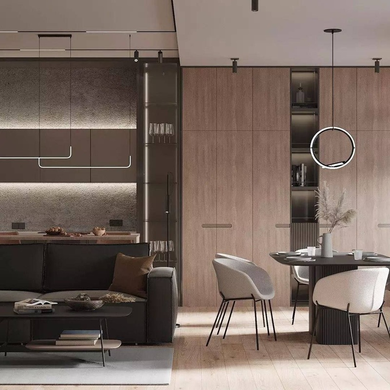 Ambientes Integrados com Design Impecável – Uma combinação perfeita de materiais nobres, tons sofisticados e soluções funcionais para espaços aconchegantes e contemporâneos.